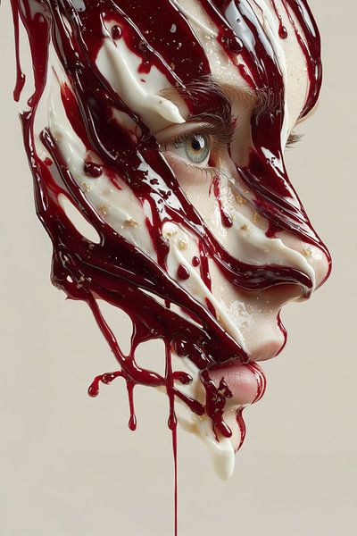 Thick layers of red strawberry sauce and light vanilla cream flow over the skin. The strawberry sauce runs in…
