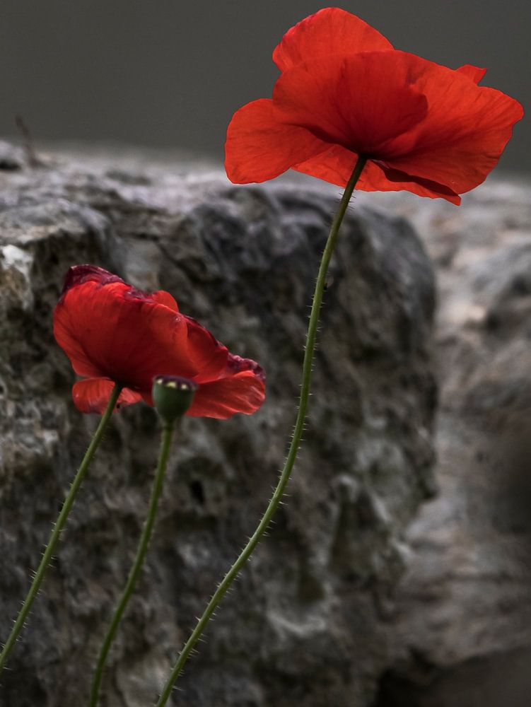 I was sitting in a beautiful garden in France looking around and then, of course, red caught my eye again. My favourite colour. The contrast with the stones in the background caught my eye. This made the red poppies stand out so beautifully. Personally, these flowers make me especially happy!