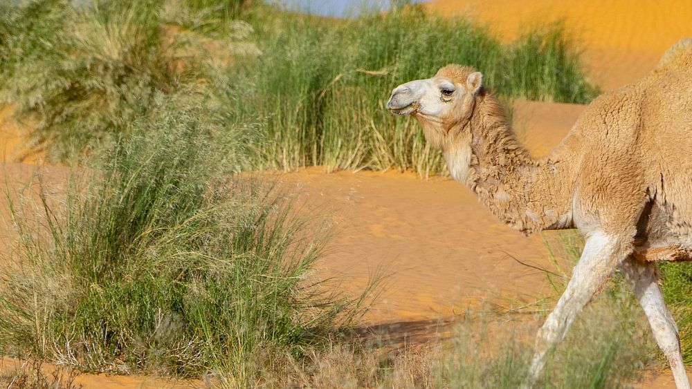 Camel travels through Sahara, Tunisia by Jessica Lokker