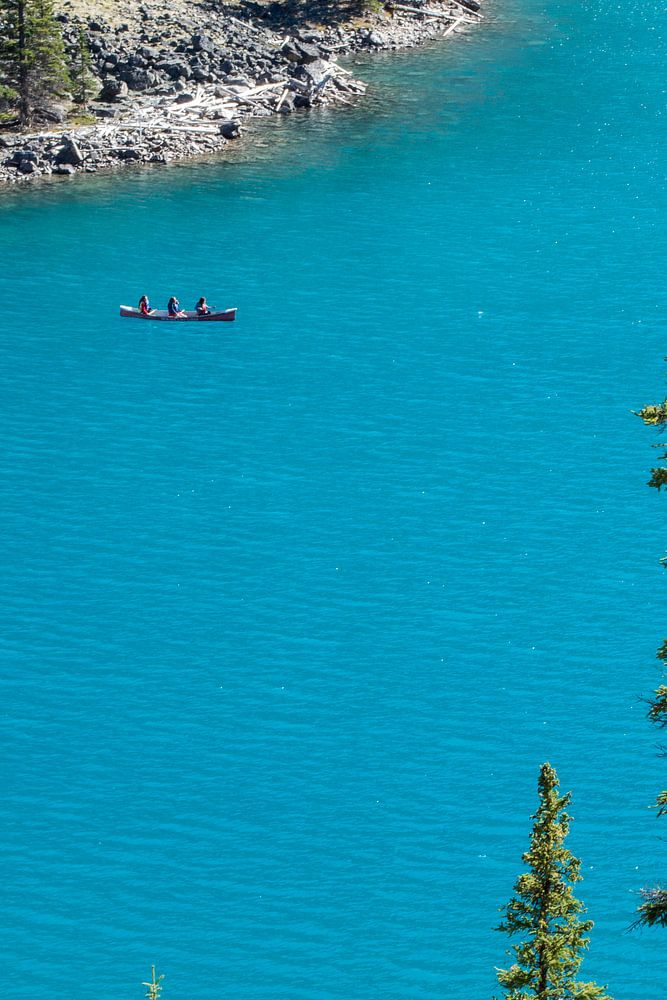 Perfect sunny afternoon activity! Paddeling on Moraine Lake, Canada.