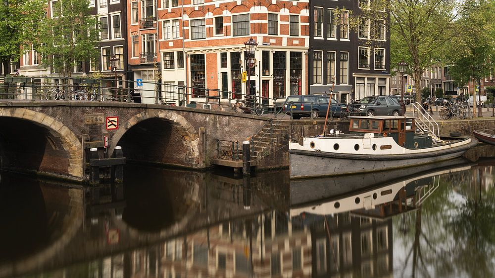 Buy the photo Canal and old houses in Jordaan, Amsterdam, Netherlands. by Lorena Cirstea on canvas, ArtFrame, poster and wallpaper, printed on demand in high quality.