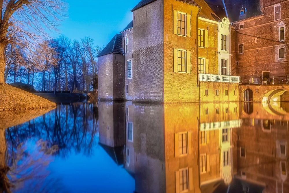 One of Geldersch Landschap en Kasteelen's beautifully restored castles is the Cannenburch in Vaassen. On a windless evening, the old castle reflects in the moat.