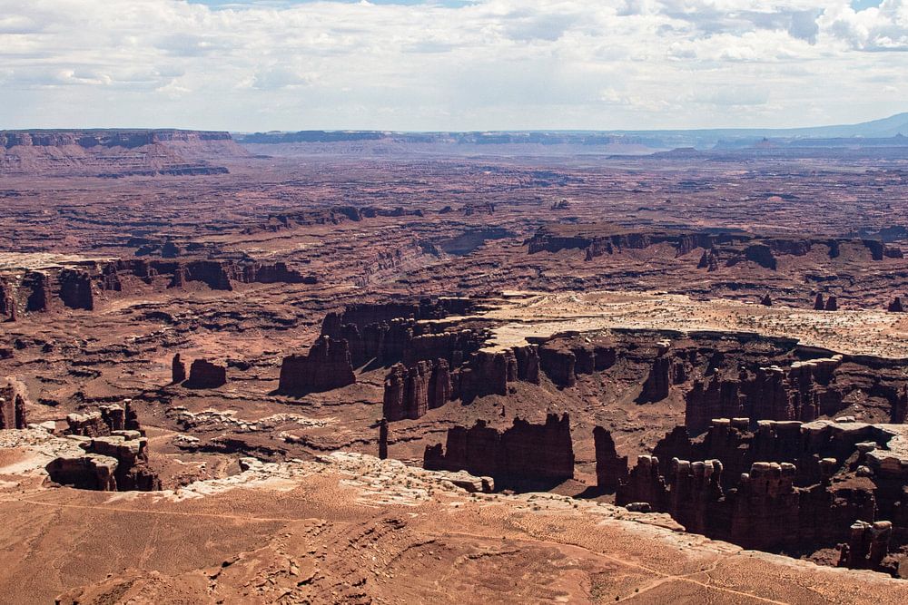 Canyonlands National Park in Utah. It is possible to drive along the canyons with a car or camper but it is even more beautiful to drive through the canyons in a (rented) 4x4 over sometimes very narrow and steep trails.
