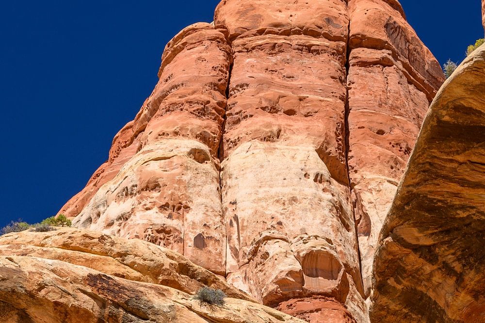 The landscape around us was unreal beauty. The needle-shaped rock formations, from which this part of Canyonlands takes its name, stood out sharply against the steel-blue sky. The colours of the sandstone seemed even more intense in the bright light: red, orange and ochre yellow, as if they were on fire. Every detail of the landscape was enhanced by the heat, as if nature wanted to show how vibrant it could be, even in these harsh conditions.