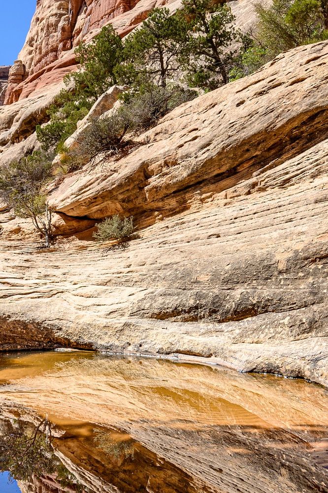 The landscape around us was unreal beauty. The needle-shaped rock formations, from which this part of Canyonlands takes its name, stood out sharply against the steel-blue sky. The colours of the sandstone seemed even more intense in the bright light: red, orange and ochre yellow, as if they were on fire. Every detail of the landscape was enhanced by the heat, as if nature wanted to show how vibrant it could be, even in these harsh conditions.
