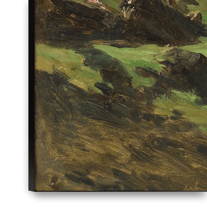 Buy Carlos de Haes-Green Meadow Valley stream landscape, Antique landscape as a reproduction on canvas, ArtFrame, poster and wallpaper, printed on demand in high quality.