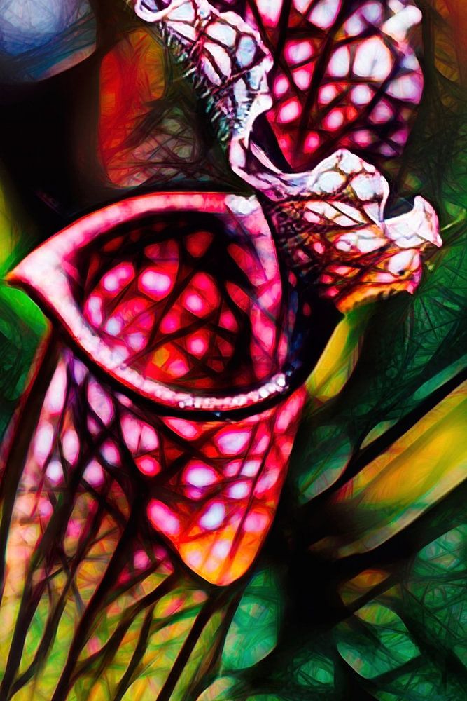 Digital processing of a close-up of a carnivorous plant.