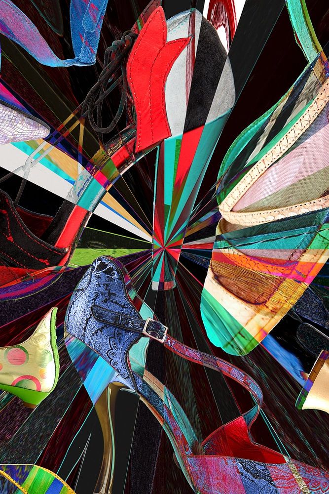 I photographed and digitally recorded the entire oeuvre of shoe designer Jan Jansen. Carrousel of shoes is a composite of many special shoes, composed layer by layer and manipulated so that only the shape of the shoe is preserved. The beauty of this digital artwork is that you can change the way you hang it, four times. That is why the work is called Carrousel of shoes.