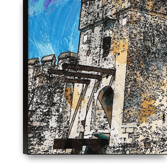 Castle with tower and a gate and blue sky in Sirmione Italy , digital art