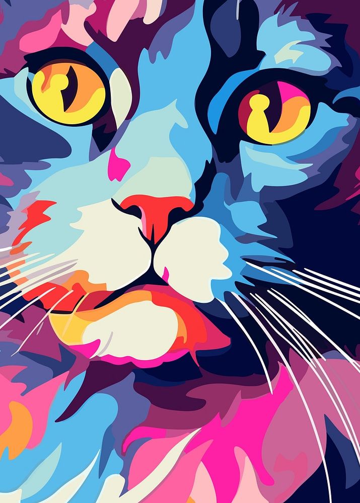 Amazing world of cute cat pop art design! Dive into a vibrant realm where animals come to life in bold and captivating ways. Our cat pop art designs fuse the beauty of nature with the vibrancy of pop culture, creating a truly unique visual experience.