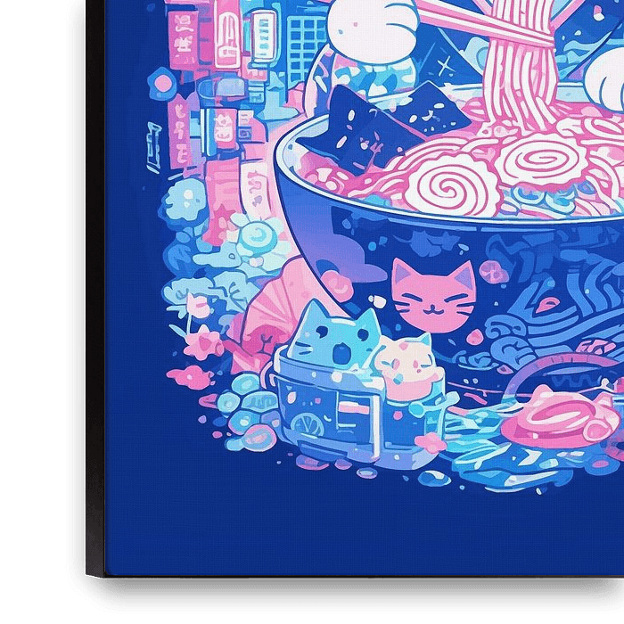 Buy this digital art artwork Cat Eating Ramen Neon by MIROKKU as a reproduction on canvas, ArtFrame, poster and wallpaper, printed on demand in high quality.