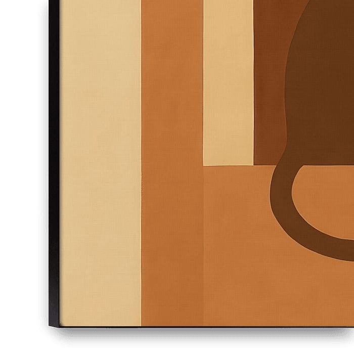 Discover the serene power of an abstract minimalist work in which a cat comes to life in warm earth tones.