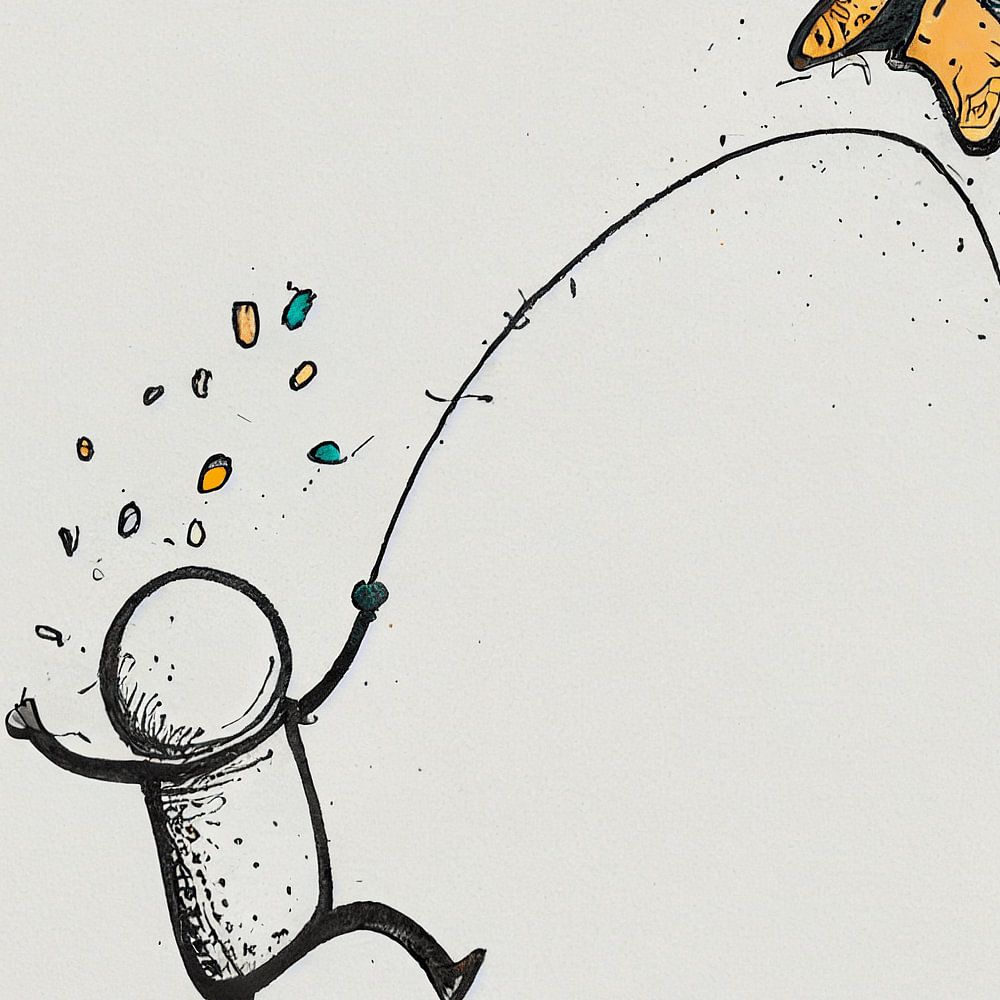A figure trying to capture a colourful butterfly! This unique image shows a simple, yet powerful and emotional design set against a white background. Get carried away by the joy and dreaminess of this image and add a unique and artistic element to your home or office.