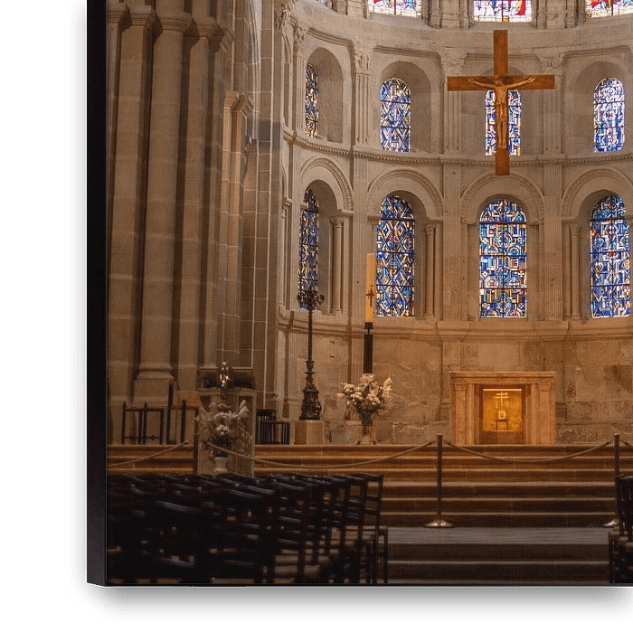 This is the interior of Autun cathedral. Beautiful stained glass!