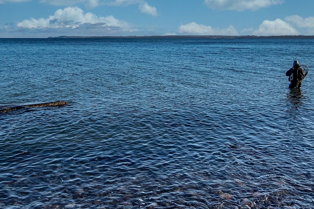 Lone angler in the icy Baltic Sea at the end of December