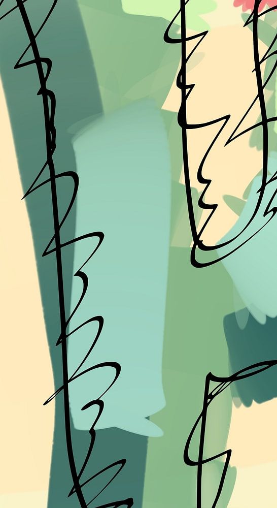 “Cactus” exemplifies a captivating blend of abstraction and minimalism through its distinctive graphic style. Thick, flowing lines define the cactus’s silhouette, conveying a sense of vitality and movement rather than strict realism. Soft, layered colors create a harmonious palette of pale greens, yellows, and contrasting reds, while the simplification of natural details enhances the work’s symbolic nature. The delicate textures of the background support the central form, allowing the cactus and its whimsically depicted flowers to capture the viewer’s attention. Overall, this minimalist composition centers on the essence of the subject, inviting emotional engagement and contemplation while showcasing a dynamic interplay of shapes and colors.