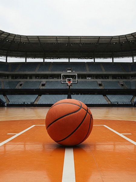 This dynamic design showcases a basketball placed precisely on the center line, creating a bold visual that instantly captures the heart of the game. The arena seats in the background emphasize competition, teamwork, and performance, while the vibrant court colors bring energy and motion to the artwork. Perfect for athletes, fans, and…