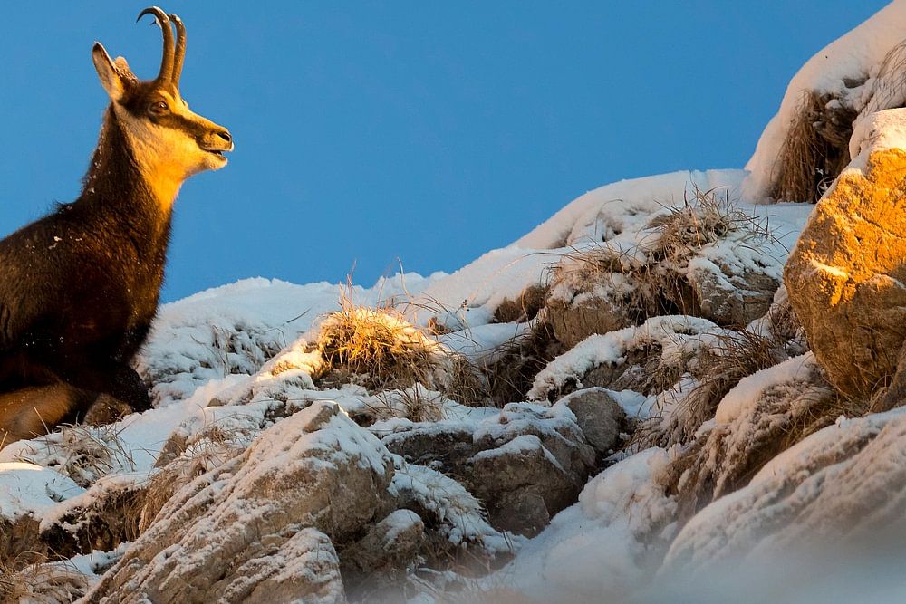 Buy the photo Chamois in winter by Dieter Meyrl on canvas, ArtFrame, poster and wallpaper, printed on demand in high quality.