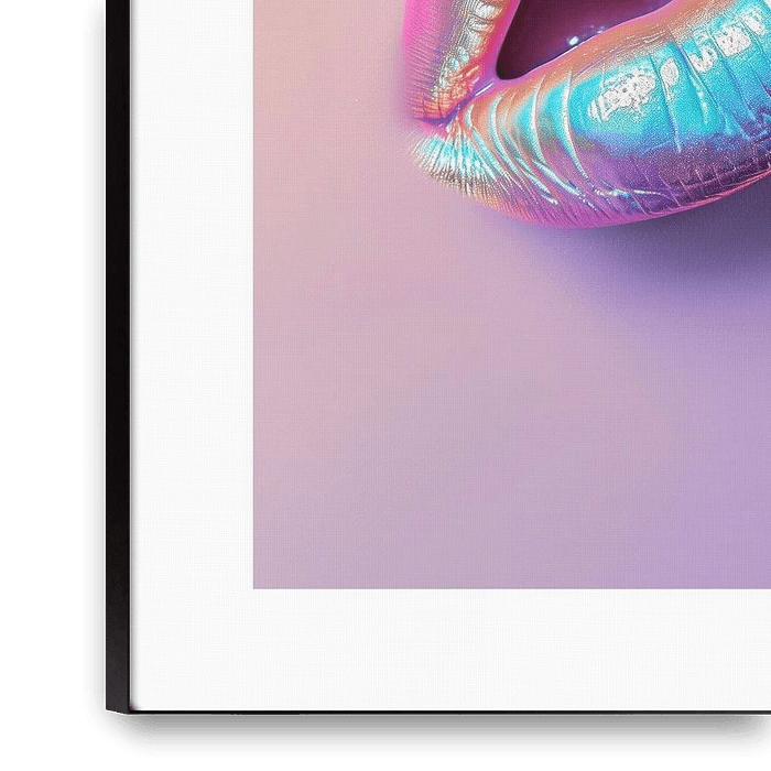 This motif shows only the beautiful lips with an iridescent, metallic surface. The colours are pink and lilac.