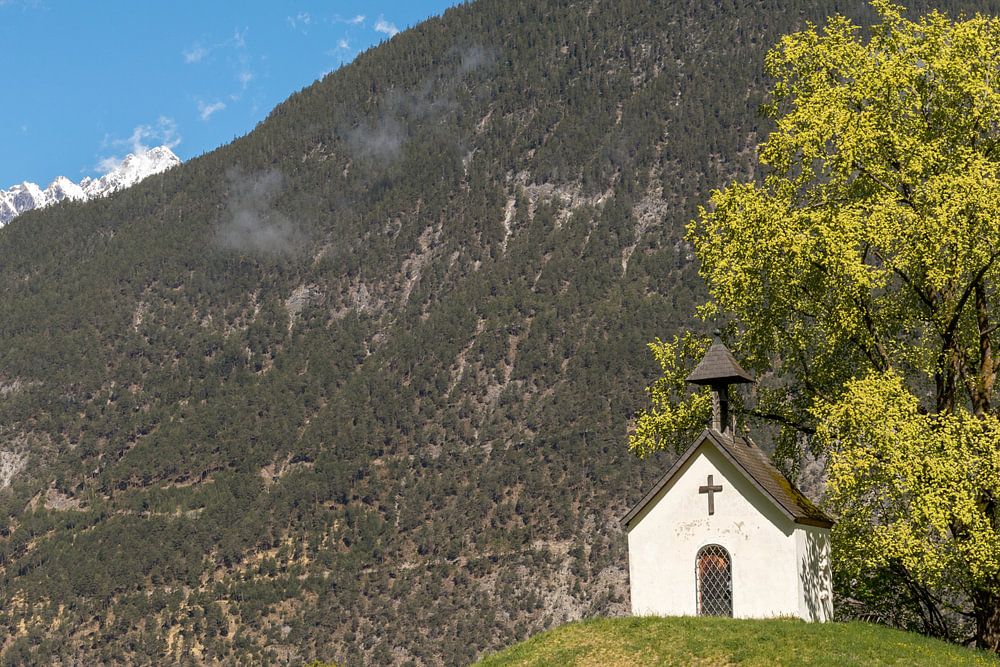 Buy this landscape artwork Chapel in Tyrol by Sandra Schönherr on canvas, ArtFrame, poster and wallpaper, printed on demand in high quality.