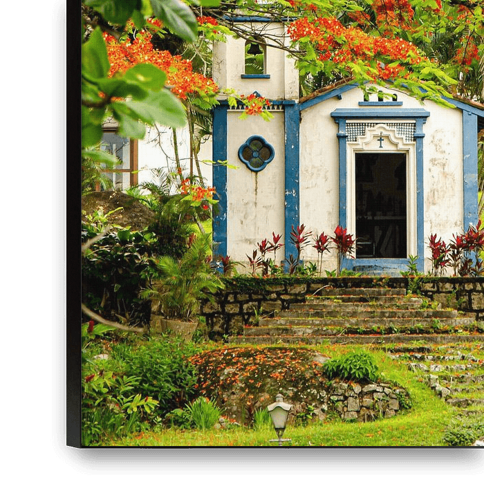Buy this landscape artwork Chapel with green vegetation on the Ihabela in Brazil by Dieter Walther on canvas, ArtFrame, poster and wallpaper, printed on demand in high quality.