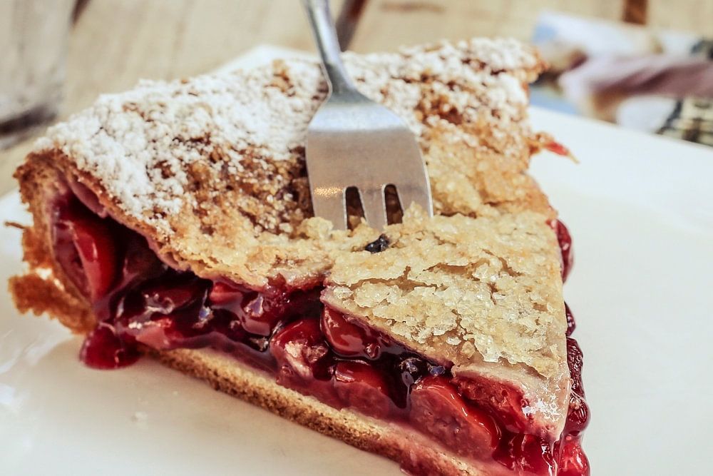 Pies consist of a round pastry base, usually 27 to 32 centimetres in diameter, which is flat with raised edges. Pies are essentially different from tarts as the base is made of a different type of dough, usually a sweet yeast dough, sometimes also lentil or sponge dough. Traditional (fermented) flan dough resembles bread dough and is usually somewhat heavier than pie dough. Kneading the dough (nowadays mostly by machine) can be quite laborious. After rising, the dough base is placed in a special baking tin. This is usually a filling of (uncooked) fruit, such as gooseberries, cherries, plums, apples or apricots, but also a filling of compote, apple sauce, pudding or rice pudding is possible. The filling is sometimes covered with a layer of puff pastry ('toeslag'), a layer of dough crumbs ('kruimelvlaai') or a grid of dough ('ruitjes-', 'riempjes-' or 'ladderflaai'). The pie is baked together with the filling on an iron baking sheet in a hot oven. After baking (and cooling) cinnamon, icing sugar or whipped cream is sometimes added.