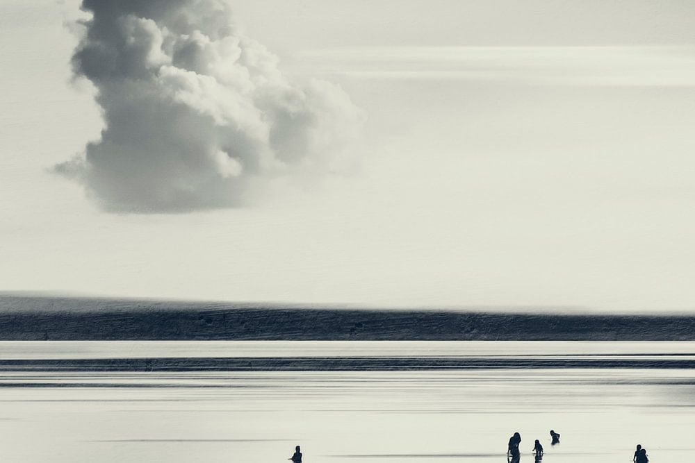 Bathers on Sanur Beach just before sunset - abstract photography in black and white