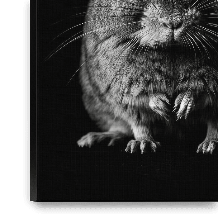 A charming creature with large, expressive ears and a round body is an impressive sight to behold. The high-contrast black and white depiction emphasises the fine details of its fur and eyes. This work of art would look great in a cosy living room, where it would create a talking point and an inviting atmosphere.