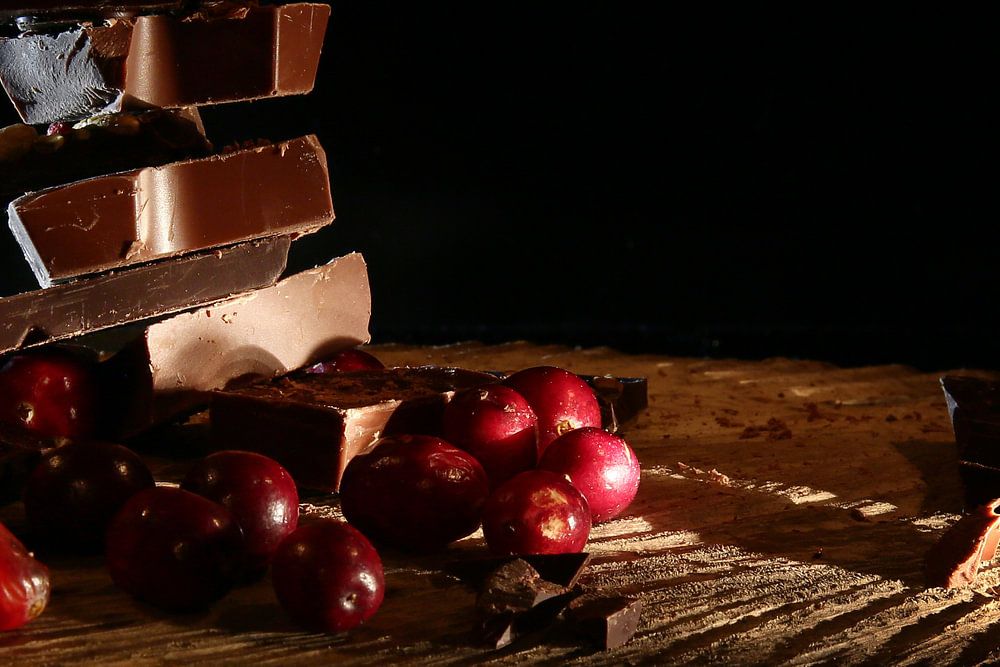 Various culinary food pictures of chocolate combined with cranberries. Nice for in the kitchen or veranda!