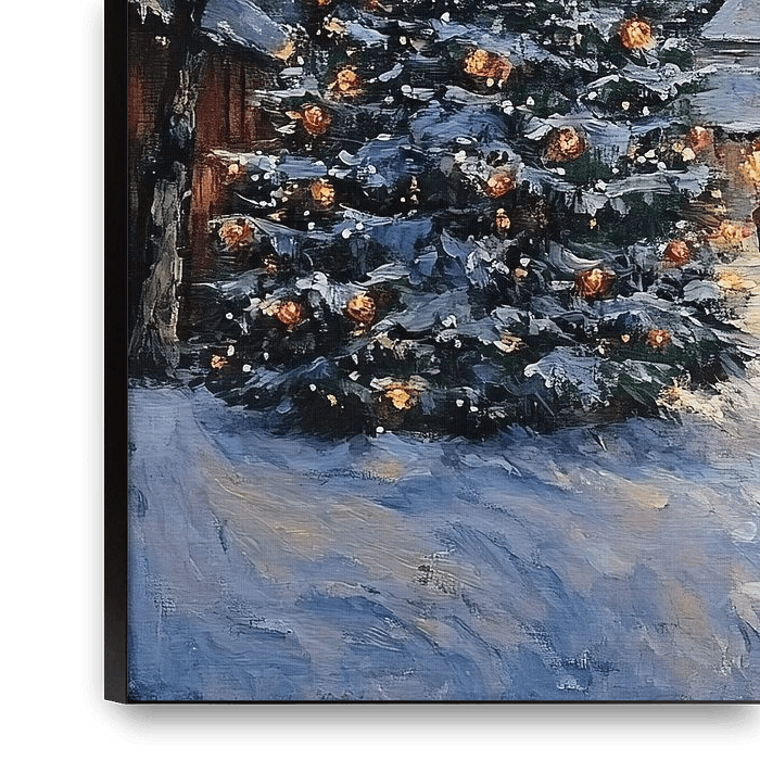 Buy this flower art Christmas Village | Illuminated Christmas Tree in Village by Wonderful Art on canvas, ArtFrame, poster and wallpaper, printed on demand in high quality.