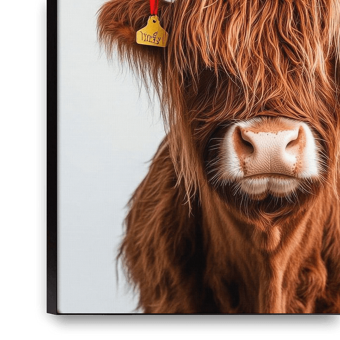 An atmospheric highlight with a touch of humour: a charming Highland cow, crowned by a festive Christmas tree, brings cheerful liveliness to any room. The warm, natural colours and playful decoration make this work of art perfect for the living room, where it can stimulate conversation and spread Christmas cheer.