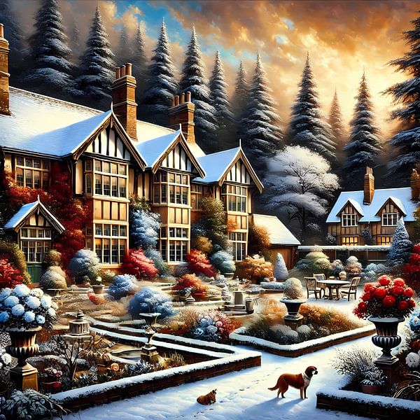 Buy this digital art artwork Christmas in the English garden by Tatjana Korneeva as a reproduction on canvas, ArtFrame, poster and wallpaper, printed on demand in high quality.
