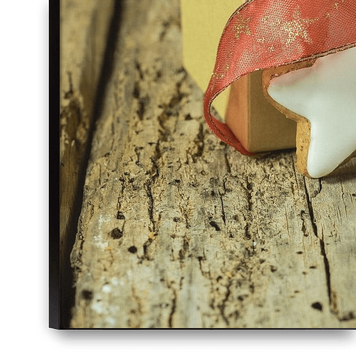 Buy the photo Christmas pastry and chocolate in gift box with red ribbon on wooden table by Alex Winter on canvas, ArtFrame, poster and wallpaper, printed on demand in high quality.