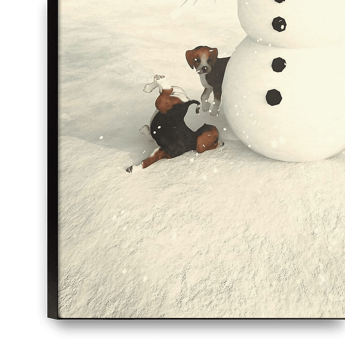 Buy this digital art artwork Christmas time with a snowman and little dogs by Jan Keteleer as a reproduction on canvas, ArtFrame, poster and wallpaper, printed on demand in high quality.