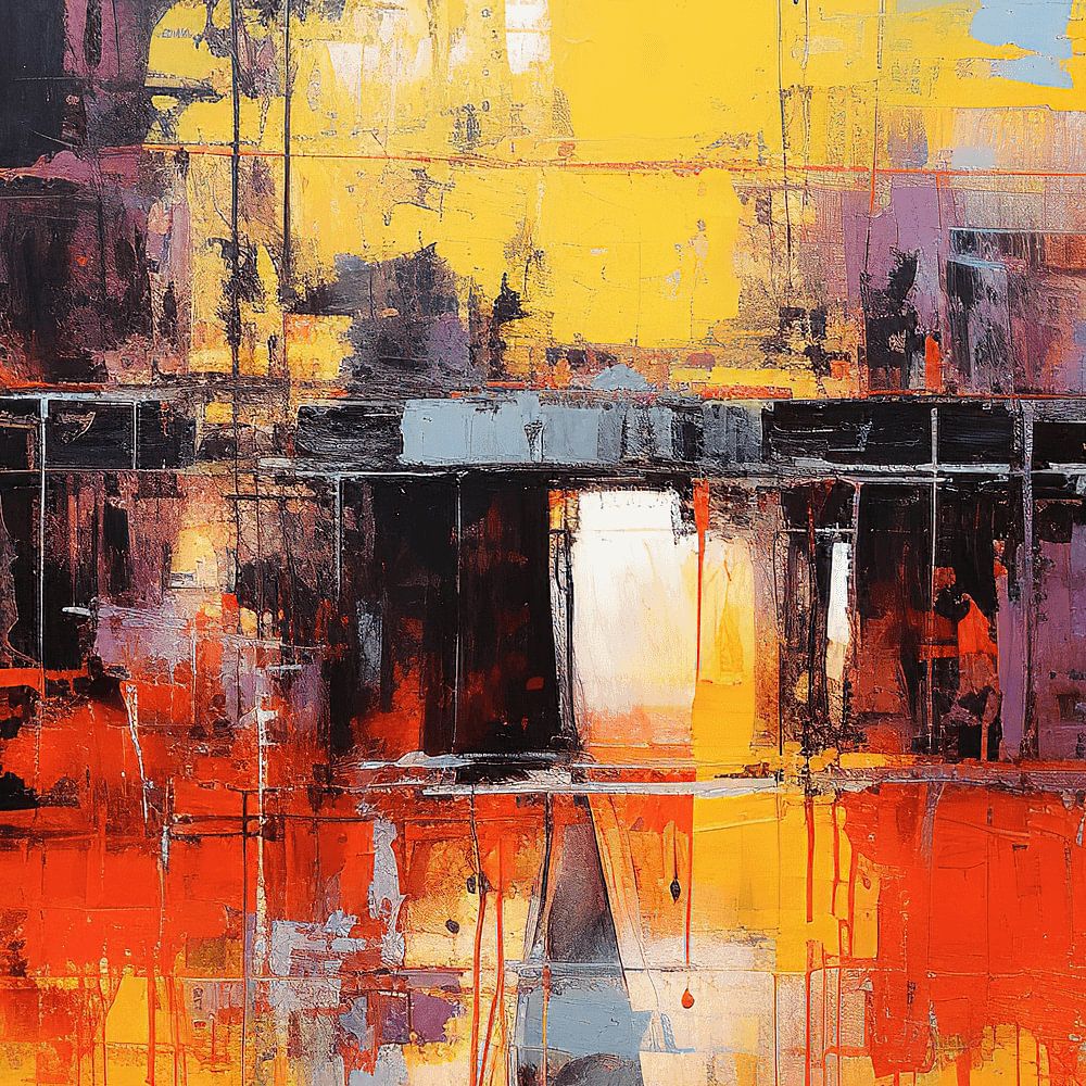 This painting from the 'Urban Symmetry' collection encapsulates the precision and balance of city life. The orderly lines and geometric patterns mirror the structured harmony that thrives in the heart of the metropolis.