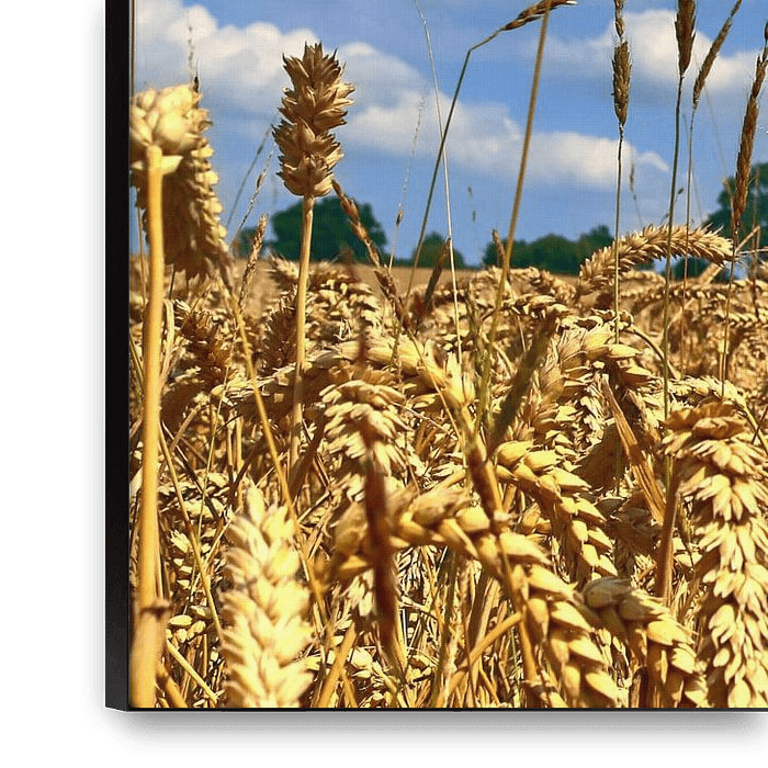 About ‘Close-up of a wheat field in summer with white clouds in the blue sky’ by MPfoto71