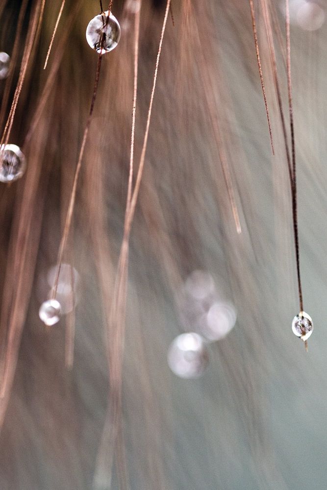 Close-up of water droplets on a grass plume by Fika Fotografie