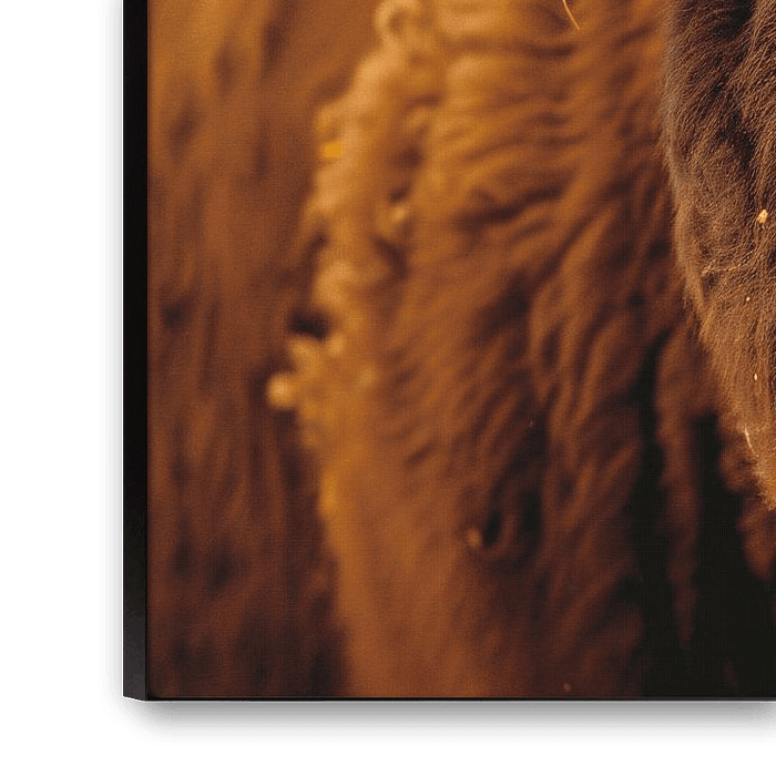 This powerful and detailed design captures the essence of wildlife through a close-up portrait of a bison. The texture of the fur, the intensity of the eyes, and the subtle colours create a stunning representation of this imposing animal. Ideal for those looking to bring a touch of nature into their home, whether in the bedroom, office or any other space. This piece exudes strength and serenity, bringing the viewer closer to nature. Perfect for animal and photography lovers.
