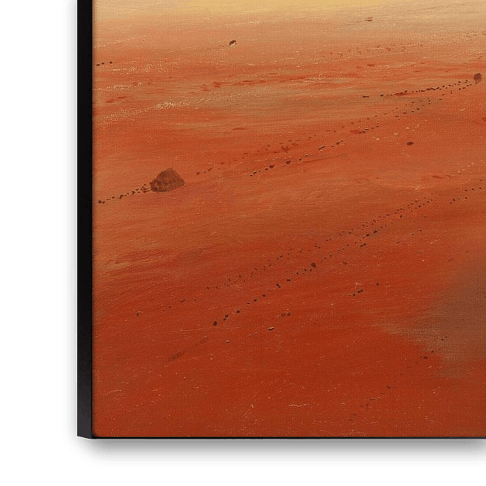 The painting presents an impressive landscape characterised by a predominant brown colour palette. In the midst of this desolate wasteland on the ground, a fascinating picture of clouds unfolds in the sky, bringing the unstoppable power of nature to the fore.