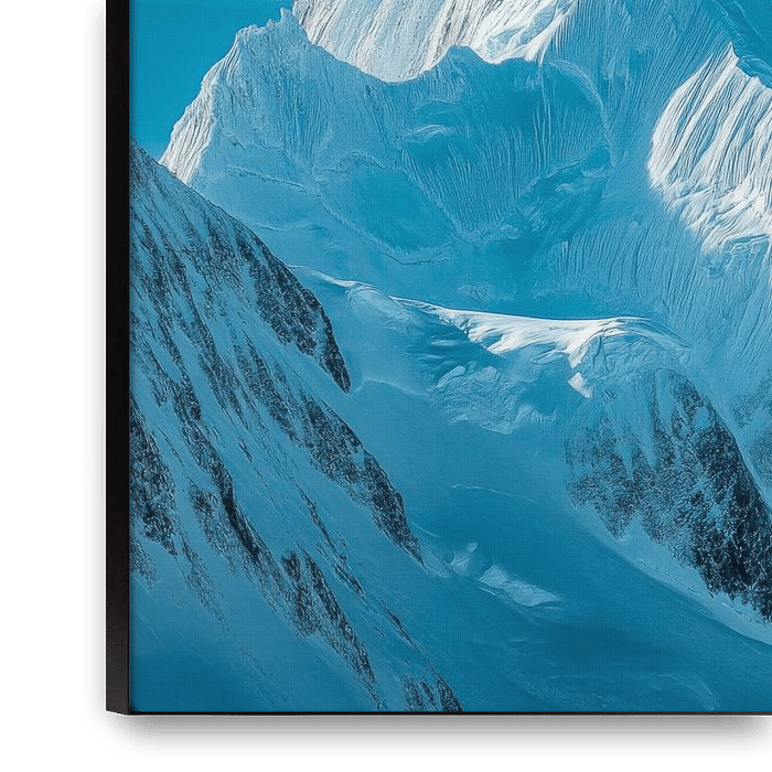 The snow-covered peak rises majestically into the clear sky, enveloped by fascinating clouds that look like a gentle veil. This impressive scenery radiates calm and grandeur. Ideal for a living room, where it creates an atmosphere of inspiration and natural beauty.