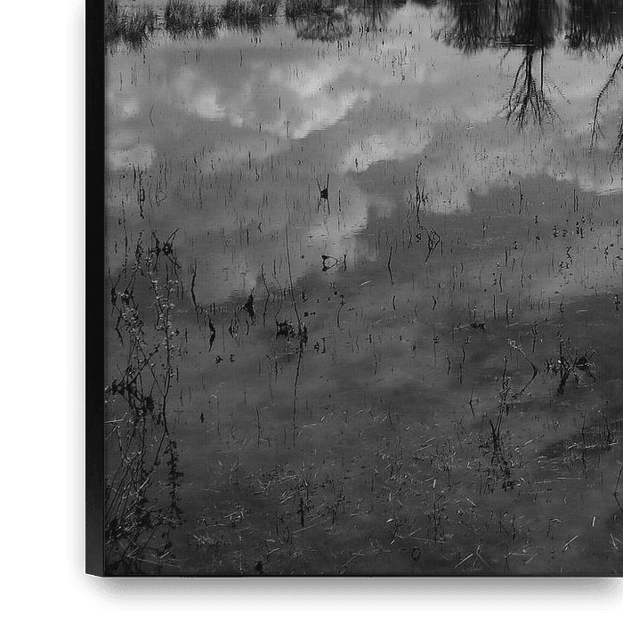 The row of trees and the clouds reflect in the water which is so smooth like a mirror. I always shoot in black and white and set up my camera in such a way that it most resembles the old analogue black and white films.