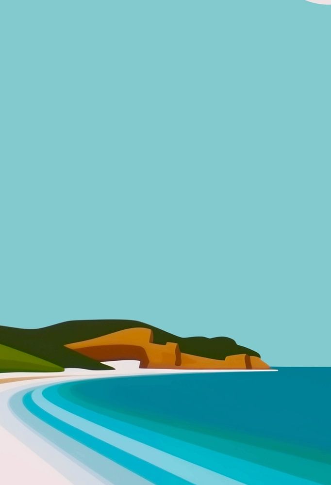 The flat perspective offers a unique view of the coastal landscape, while the light turquoise and brown create a peaceful atmosphere. This artwork is designed to be displayed on a lightbox, giving it a clean, modern look.