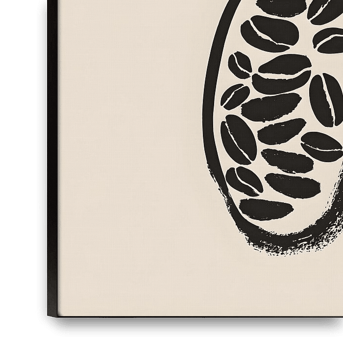 This minimalist brush line art motif shows a stylised coffee scoop filled with a multitude of abstract coffee beans. The bold black brushstrokes create a striking contrast to the warm beige background and give the motif a handmade, organic aesthetic. The form is clearly recognisable and yet reduced - a modern interplay between…