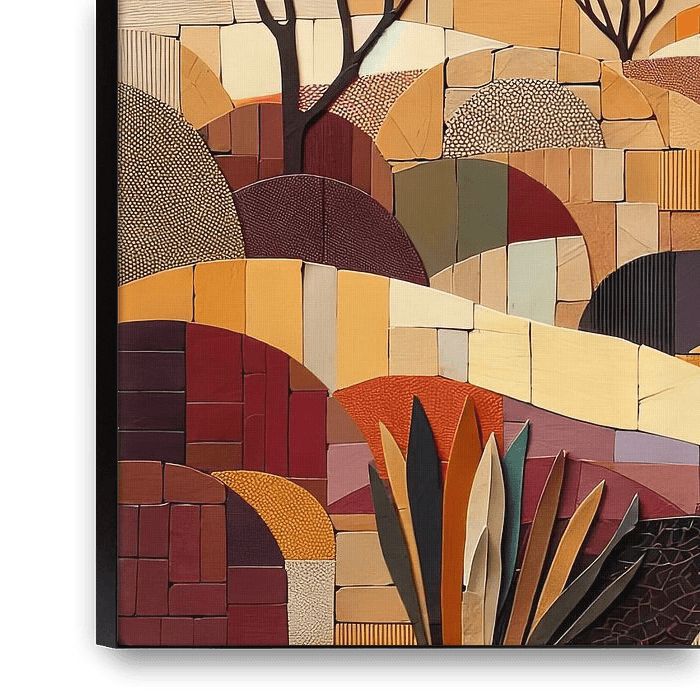 Buy this digital art artwork Collage in earth tones with giraffe by Lois Diallo as a reproduction on canvas, ArtFrame, poster and wallpaper, printed on demand in high quality.