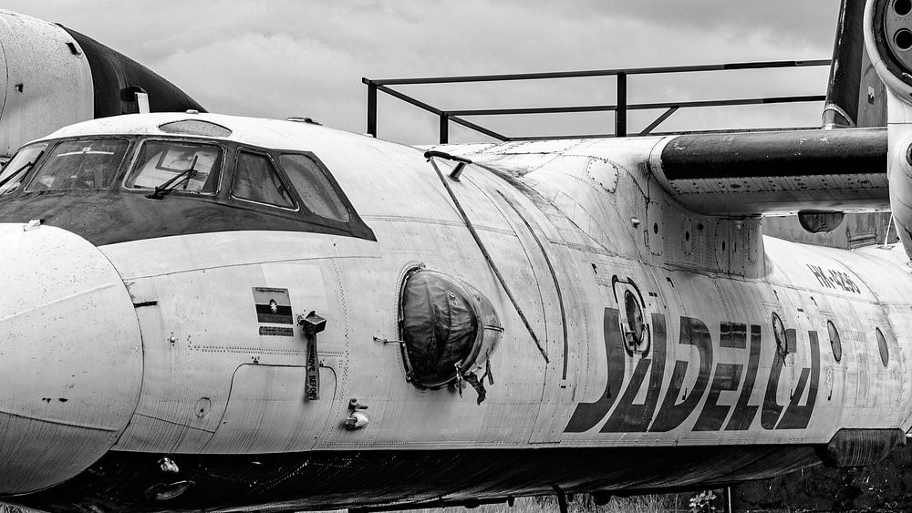 A Sadelca (=Servicio Aéreo del Caquetá) Antonov AN-32 stands at an aircraft scrapyard at Aeropuerto La Vanguardia near the city of Villavicencio in Colombia.