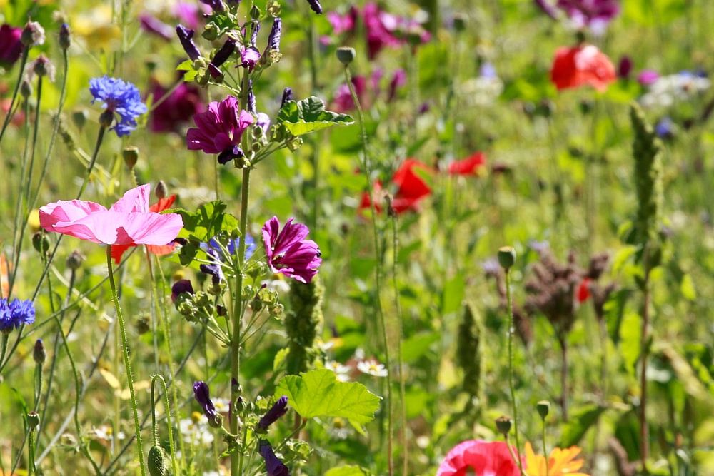 Colorful summer flowers on a flower meadow, Germany, Europe