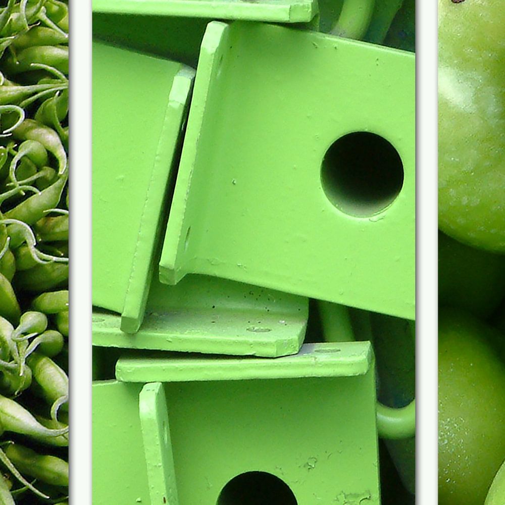Collage of photos with green objects. A cheerful eye-catcher for your room, bedroom or office. Also look at my album 'Colors' for collages with other colors.