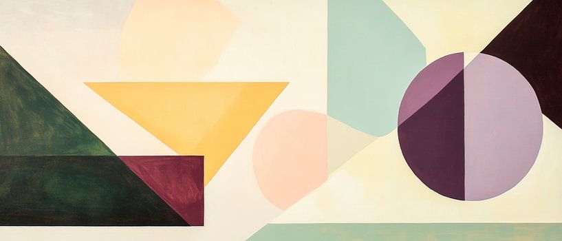 A harmonious interplay of geometric shapes and soft colours gives this artwork a modern sophistication. The contrasting figures and subtle colour palette create a relaxed atmosphere that is ideal for the living room. Here, the picture could stimulate conversation and inspiration while radiating calm.