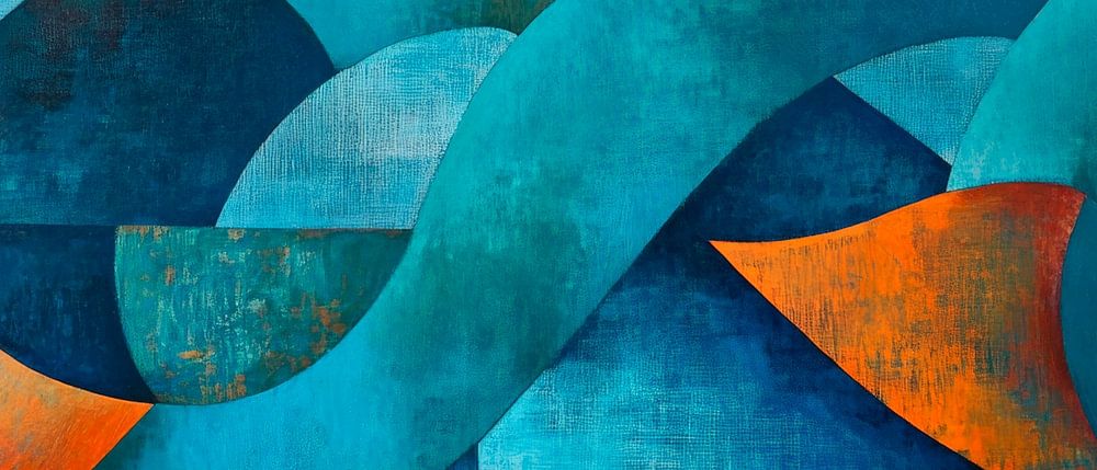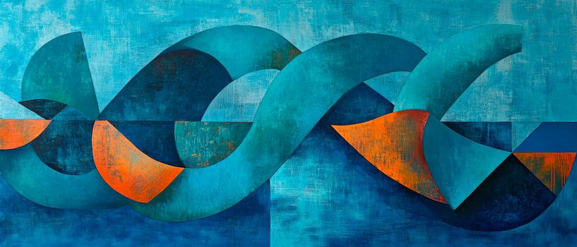 This fascinating composition of soft blue and turquoise tones with vibrant orange accents radiates harmonious elegance. The curved shapes create a sense of flow and movement, perfect for a modern living room that invites relaxation and inspiring conversation. Ideal for creating a calm yet lively atmosphere.