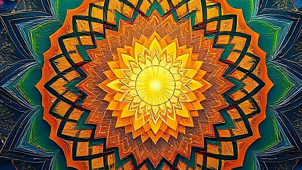 The structure of the mandala consists of concentric circles filled with intricate patterns and geometric shapes. These shapes repeat in perfect symmetry, giving the viewer a sense of balance and perfection. In the centre of the mandala is a central motif that serves as a focal point and magically attracts the eye.